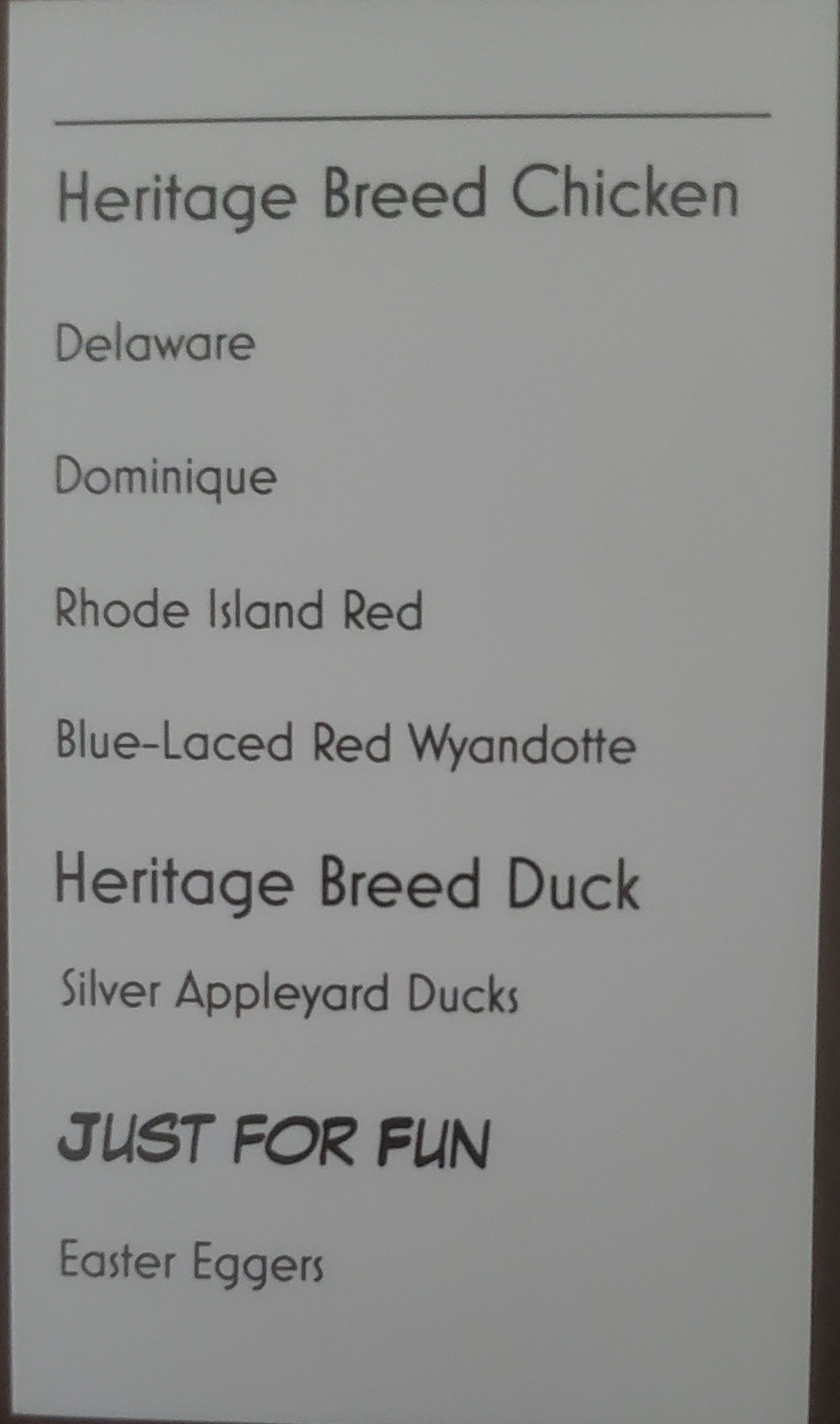 Heritage Delaware chick's