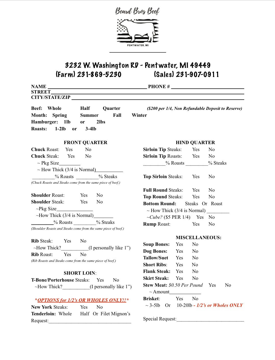 Whole, 1/2 &1/4 beef