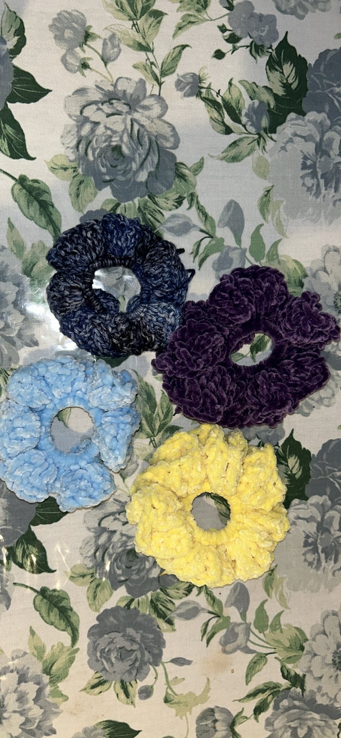 Crocheted hats and scrunchies